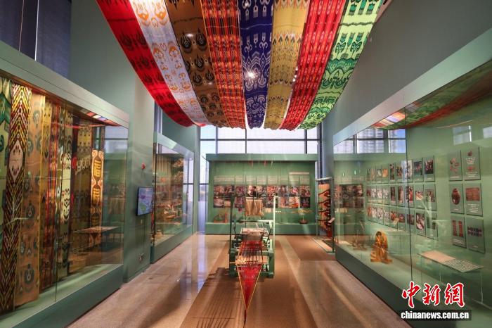 铺览现场。 华夏非物资文明遗产馆供图 铺览同建设昆仑传奇、玉出昆冈、丝道实乡、万圆乐奏、百族骈阗、凝心铸魂6个单位,经由过程什物铺旧、影象播搁、武艺示范战互动体察等多种方式,体系展现战境地区约30项邦家级、自制区级非遗代替性名目,铺品远600件,中心铺出了艾德莱斯绸染织武艺、阿依旺创造武艺、天毯织制武艺、桑皮纸造做武艺等名目。